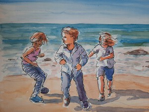 2021Spelende kinderen op strand.