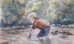 2018Kind spelend in een riviertje.